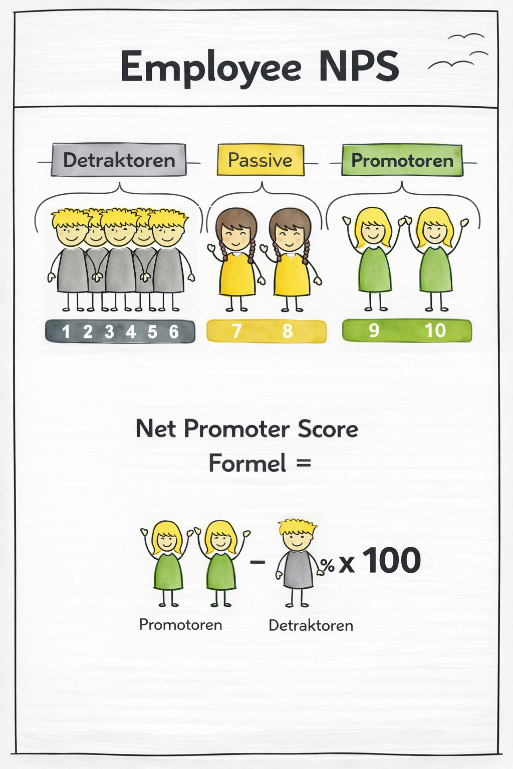 - Formel: % Promotoren - % Kritiker = eNPS